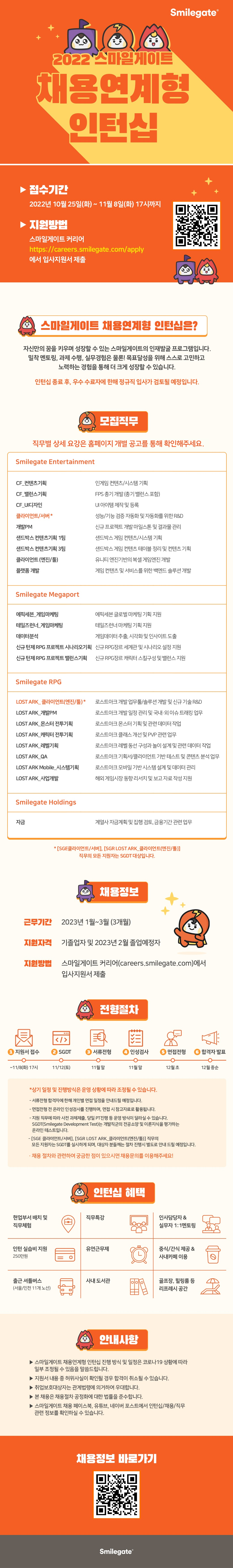 [스마일게이트] 2022 스마일게이트 채용연계형 인턴십 모집 (~11/8)